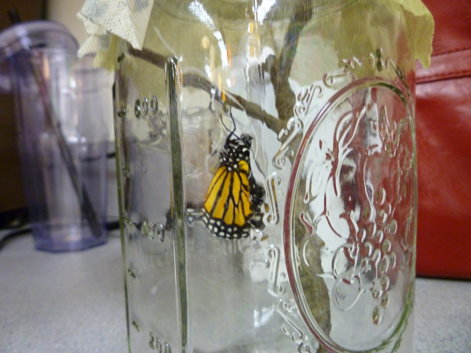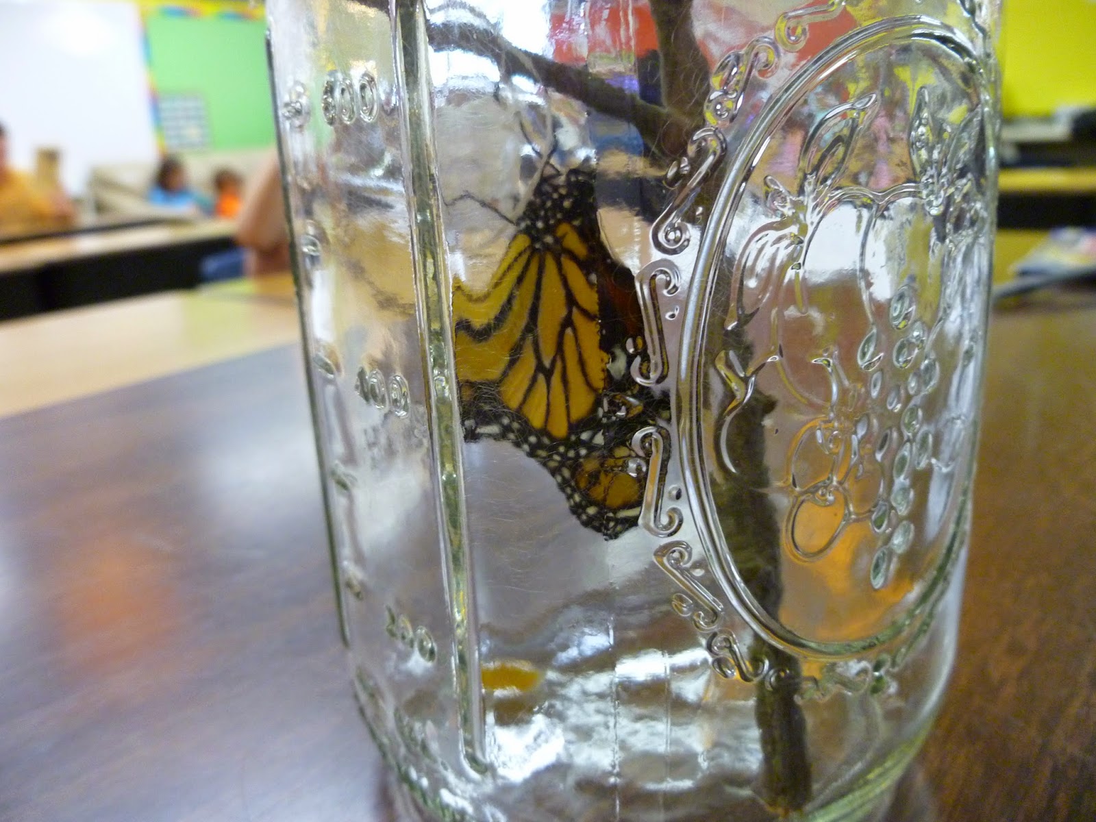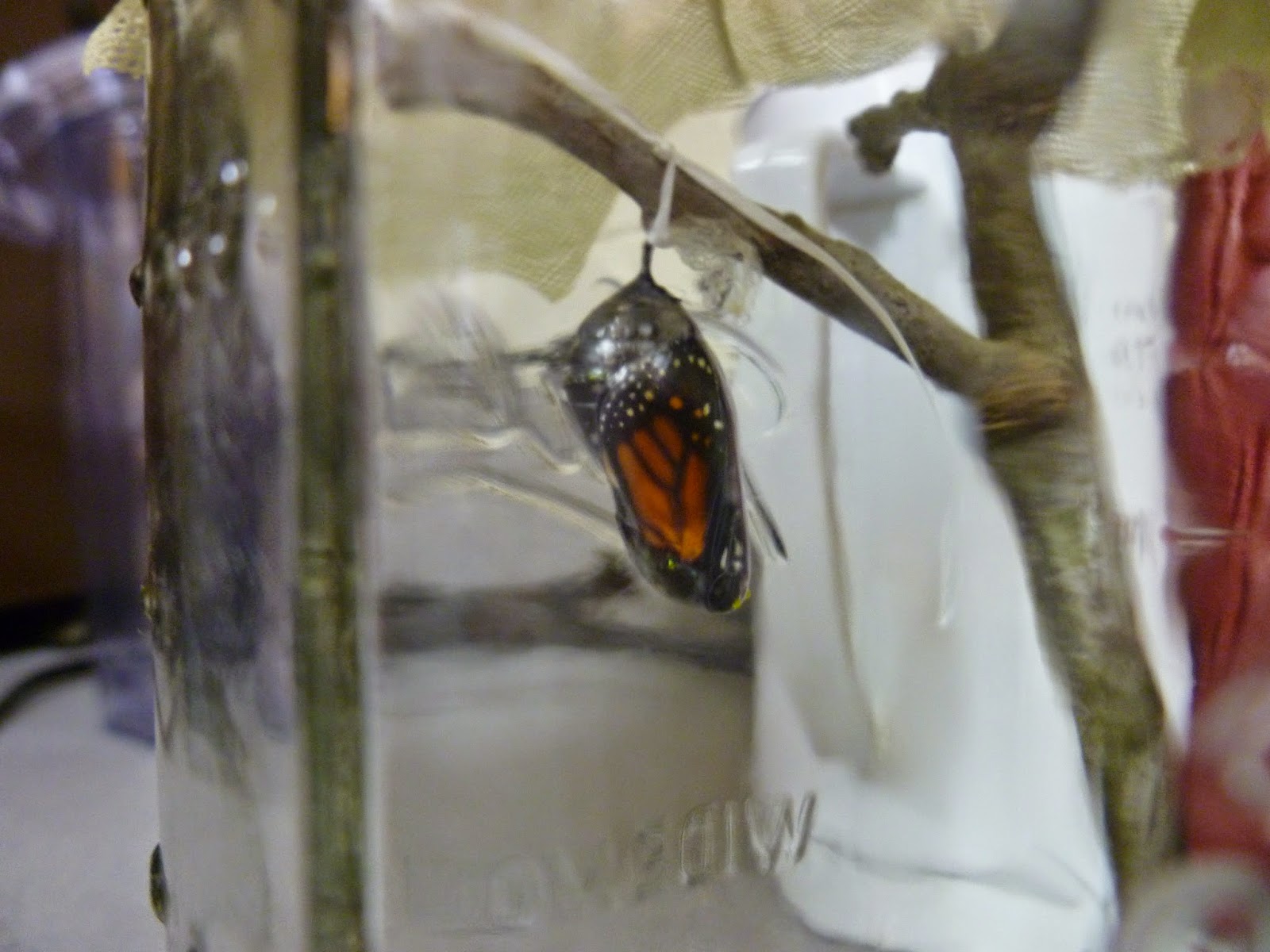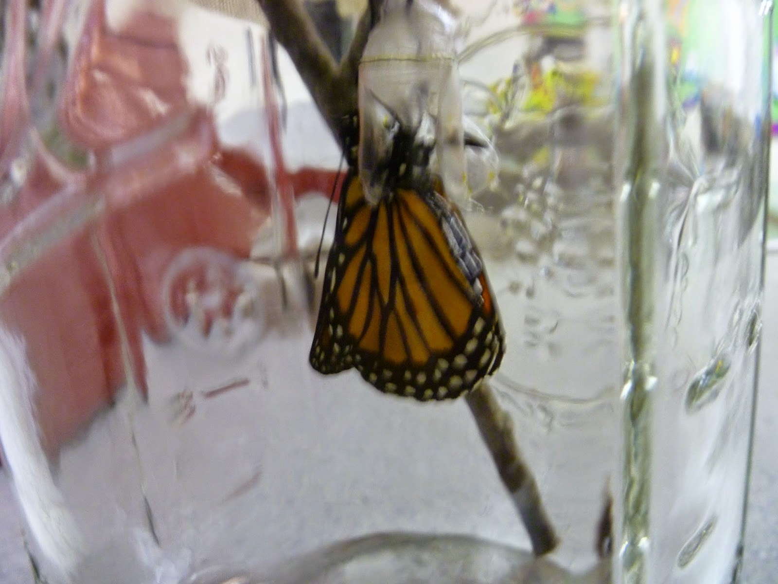 One of the students in our class was kind enough to bring in a Monarch caterpillar chrysalis and we had a lot of fun watching it change and eventually break out of its chrysalis becoming a butterfly. We took it outside later in the day and released to to migrate south.